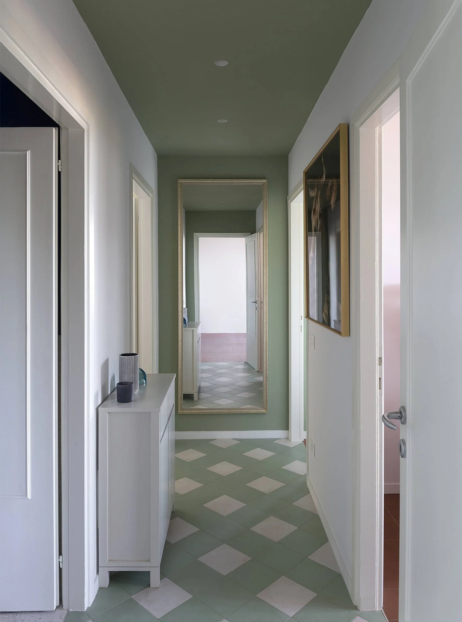 The goal was to create a comfortable, contemporary home while preserving the apartment’s original character. At the owners’ request, some existing floors, wooden doors, and characteristic details were retained and integrated into a complete renovation that encompassed systems, bathrooms, and finishes.