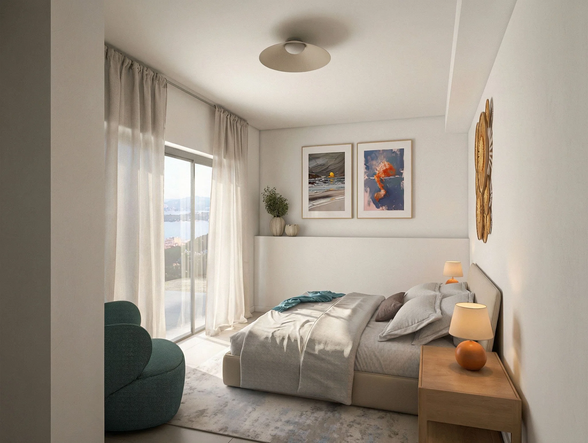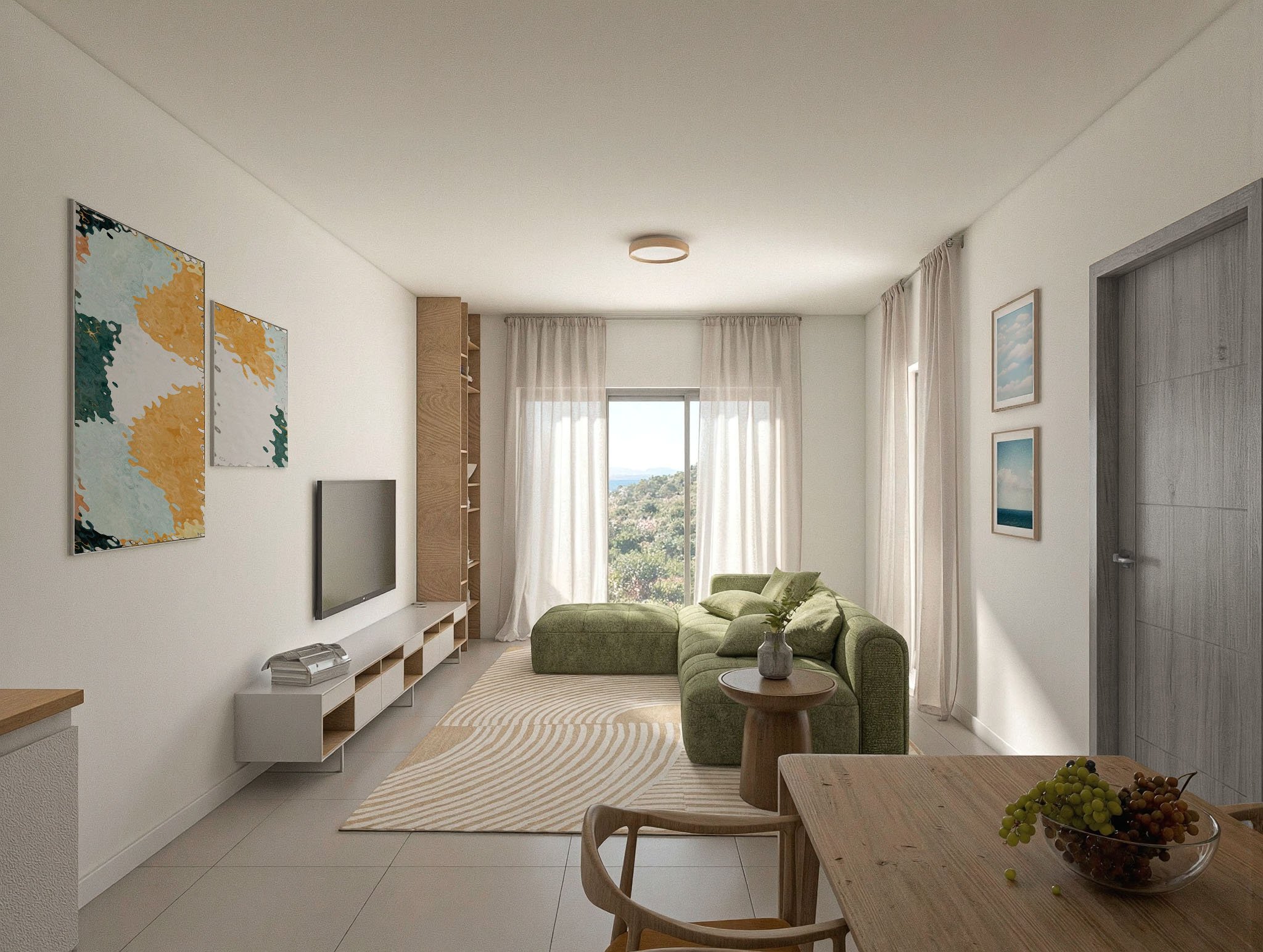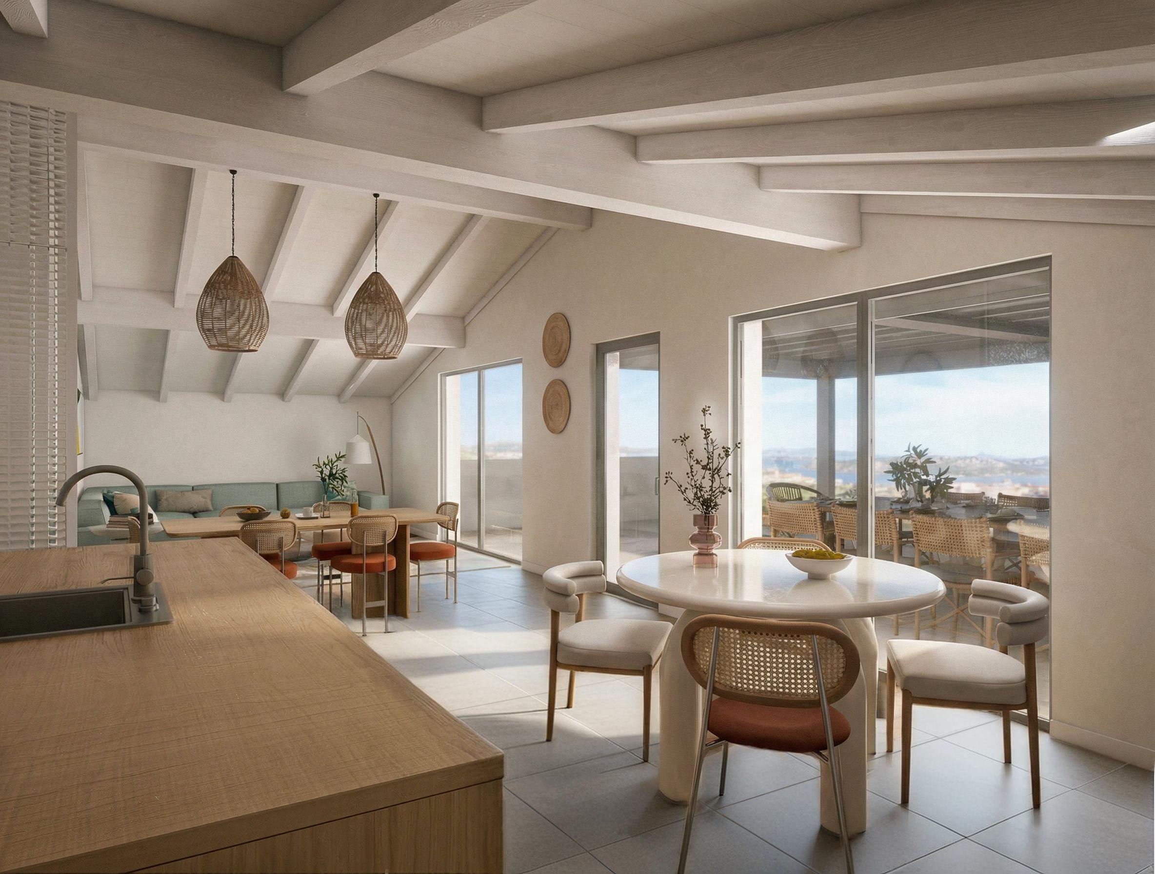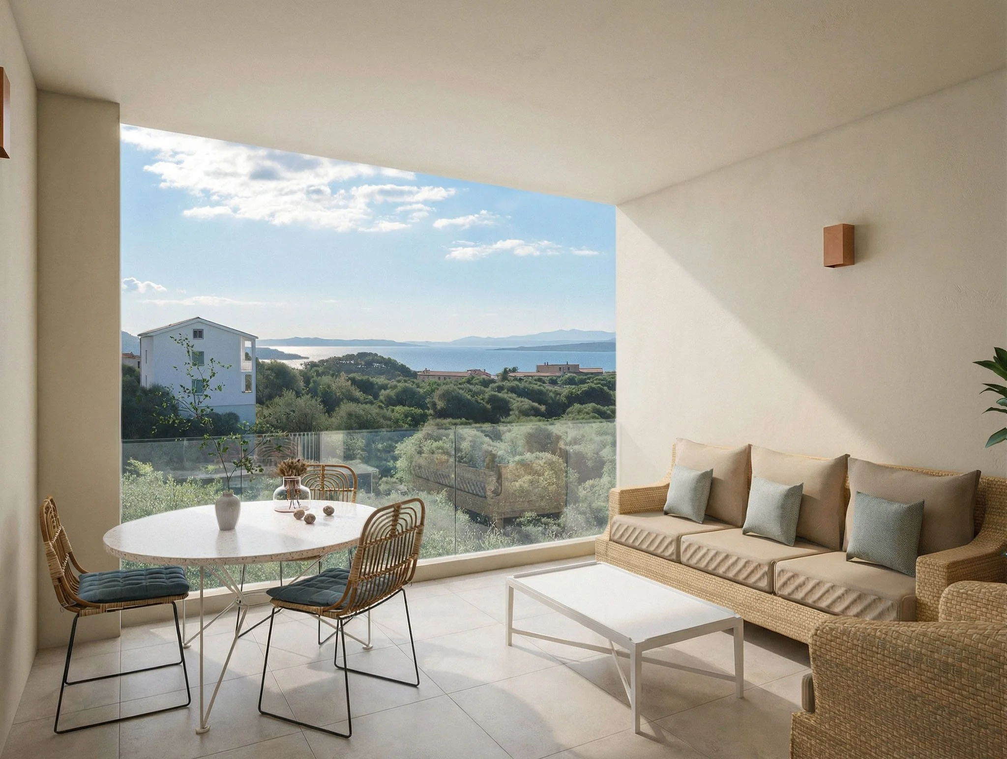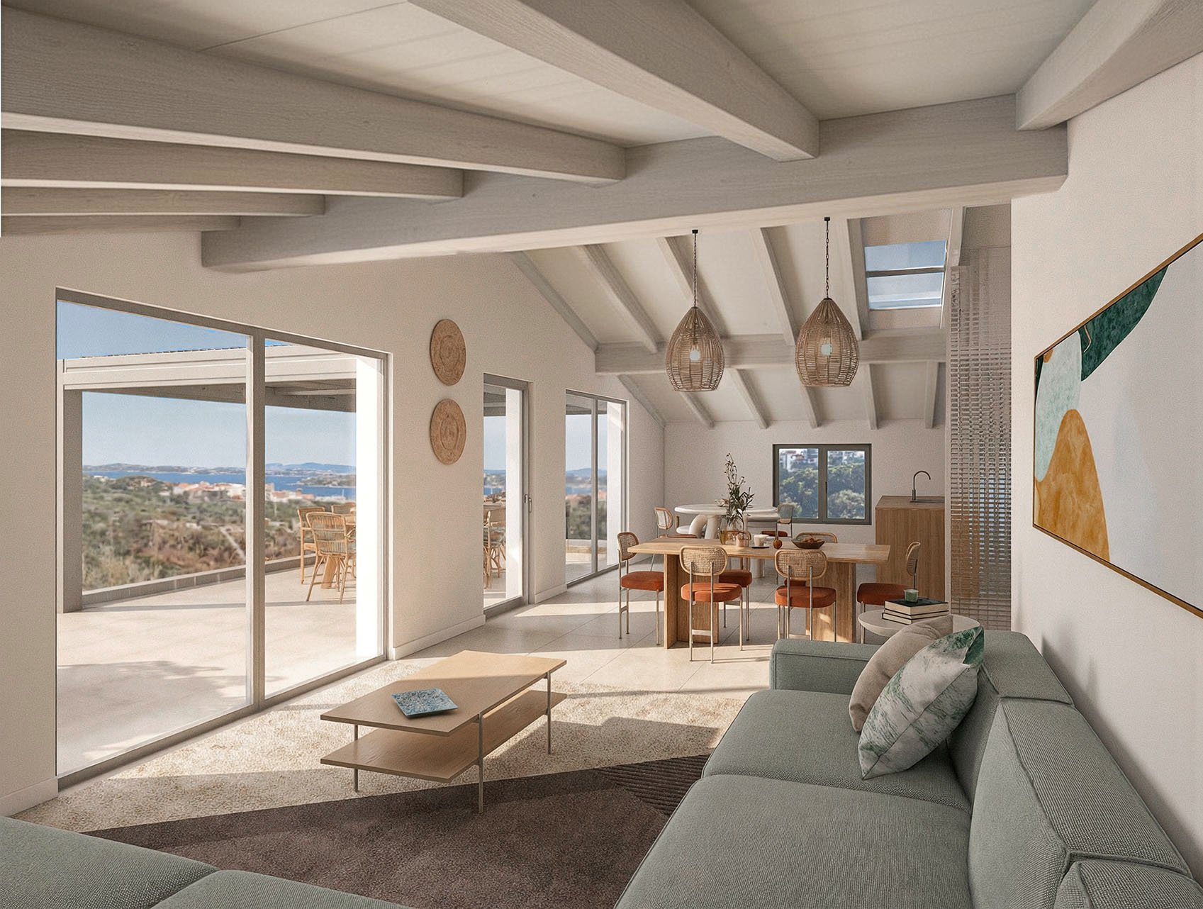 The interiors were approached with a design strategy that emphasizes panoramic sea views, natural light, materials, and the relationship with the surrounding context. Light colors, warm atmospheres, and natural materials create a sense of lightness and comfort, evoking the identity of the Island. The styling strikes a balance between contemporary and traditional, giving the apartments a coherent and fresh character, capable of conveying the experience of a holiday home. Large floor-to-ceiling windows and terraces enhance the views of the archipelago, making the landscape an integral part of the living experience. The design therefore focuses not only on aesthetic representation but also on the perception of space and comfort, conveying relaxation, light-heartedness, and a genuine sense of home from the very first glance.