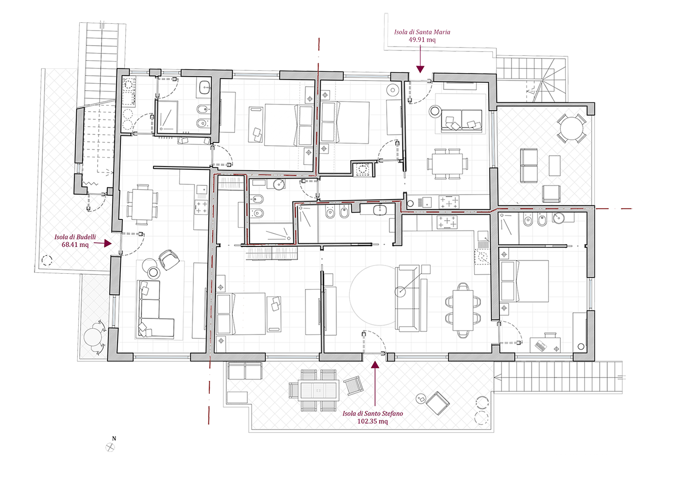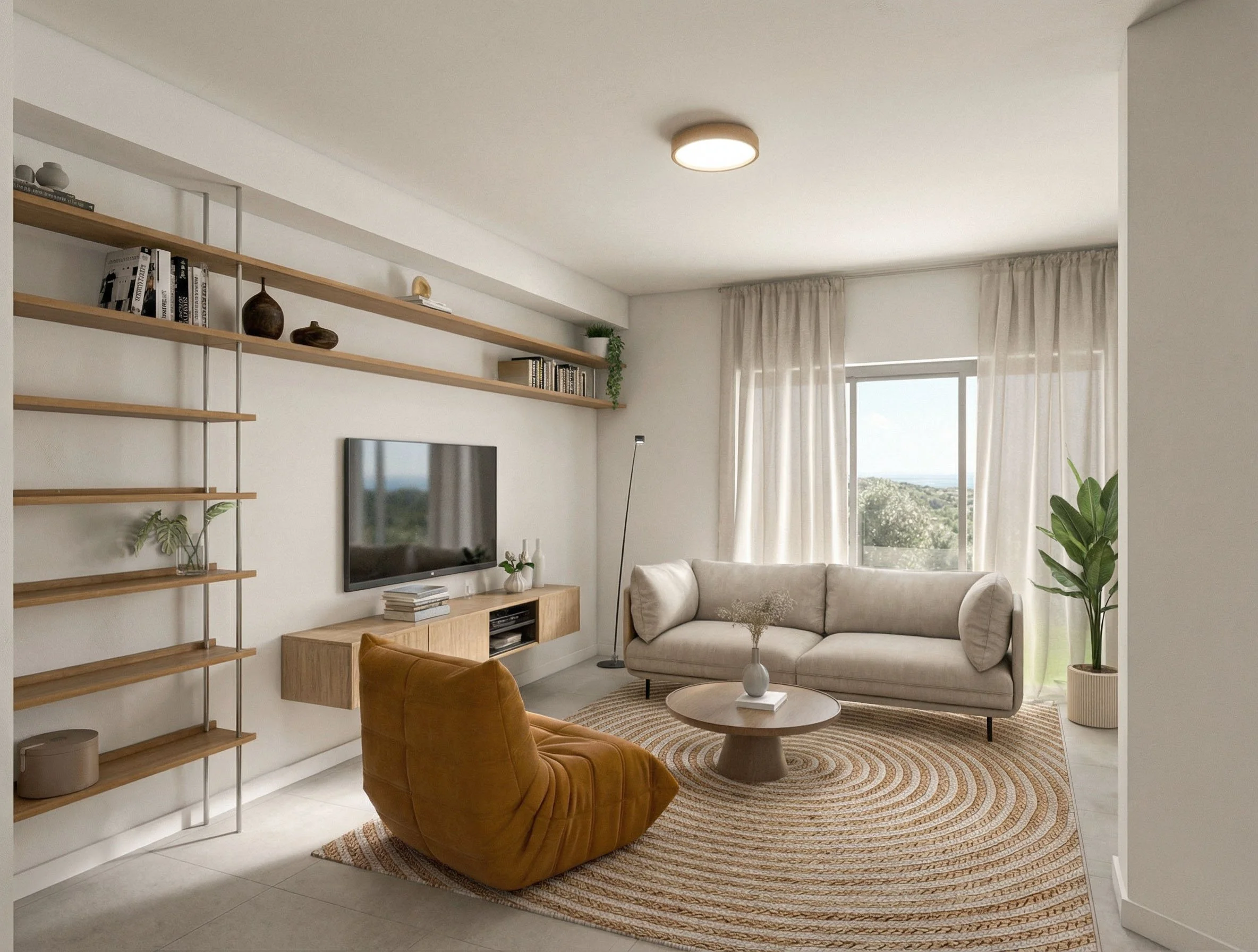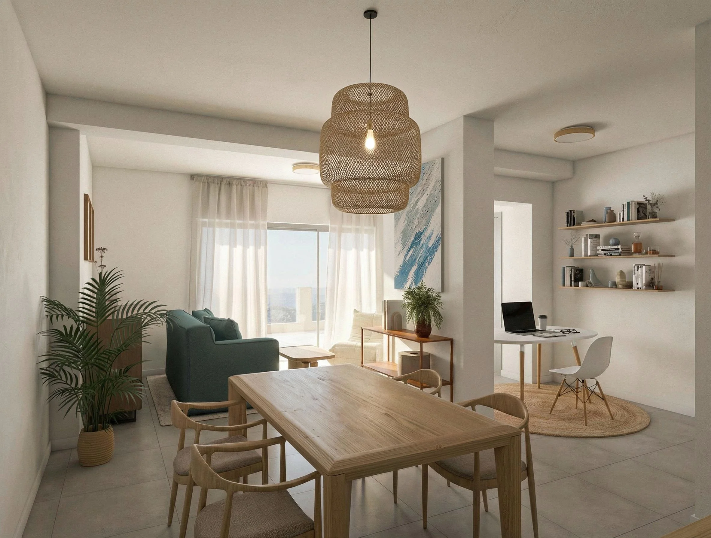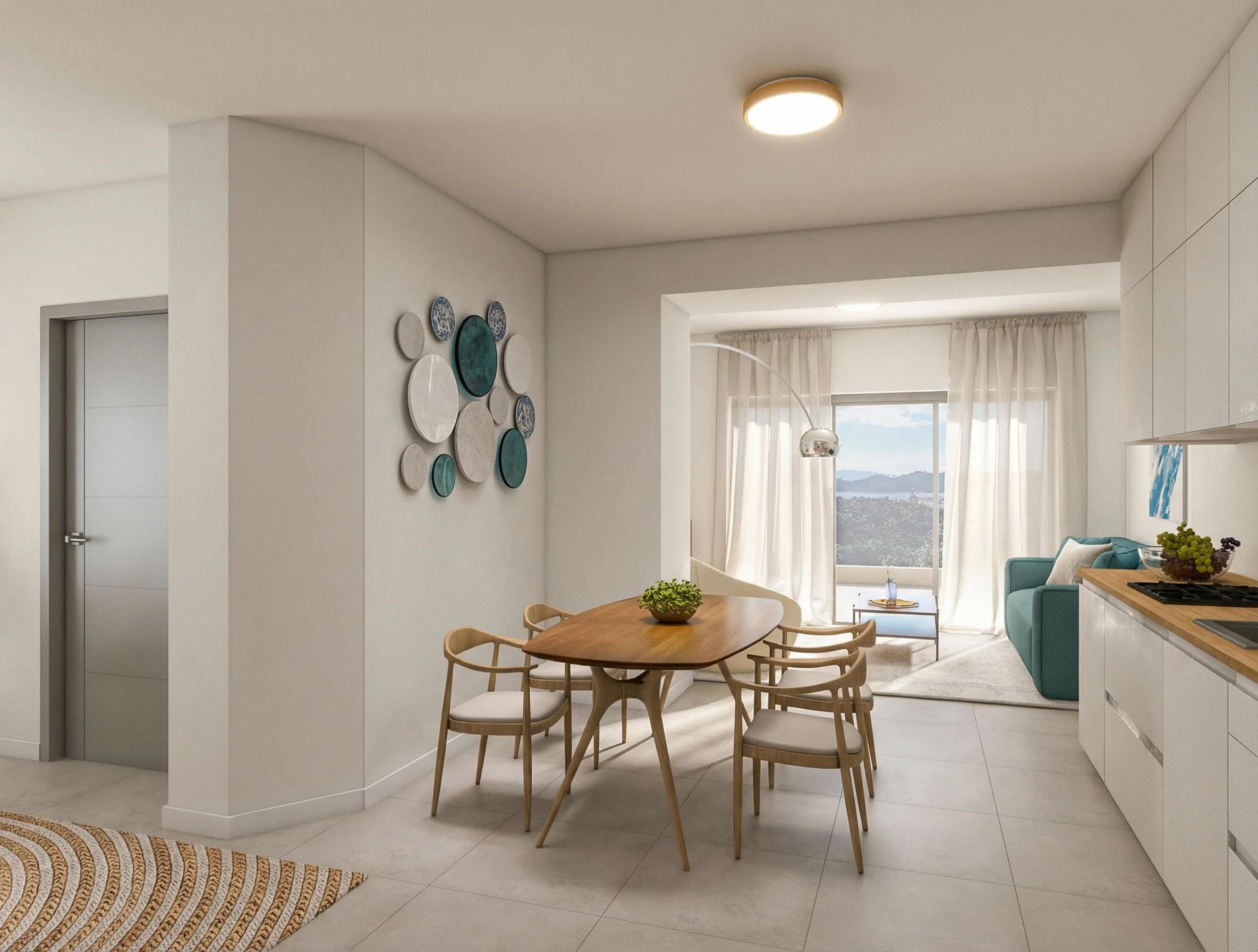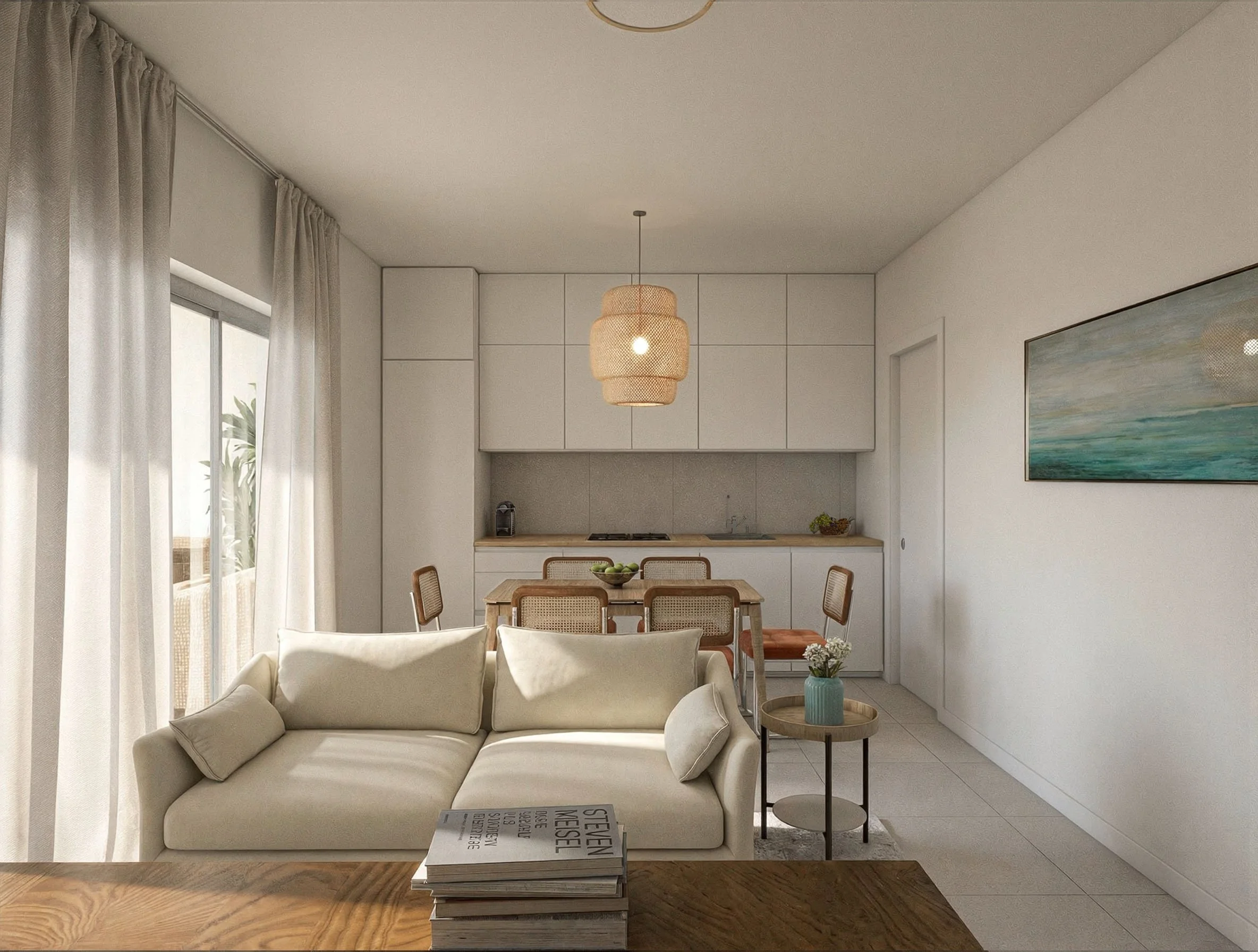 The interiors were approached with a design strategy that emphasizes panoramic sea views, natural light, materials, and the relationship with the surrounding context. Light colors, warm atmospheres, and natural materials create a sense of lightness and comfort, evoking the identity of the Island. The styling strikes a balance between contemporary and traditional, giving the apartments a coherent and fresh character, capable of conveying the experience of a holiday home. Large floor-to-ceiling windows and terraces enhance the views of the archipelago, making the landscape an integral part of the living experience. The design therefore focuses not only on aesthetic representation but also on the perception of space and comfort, conveying relaxation, light-heartedness, and a genuine sense of home from the very first glance.