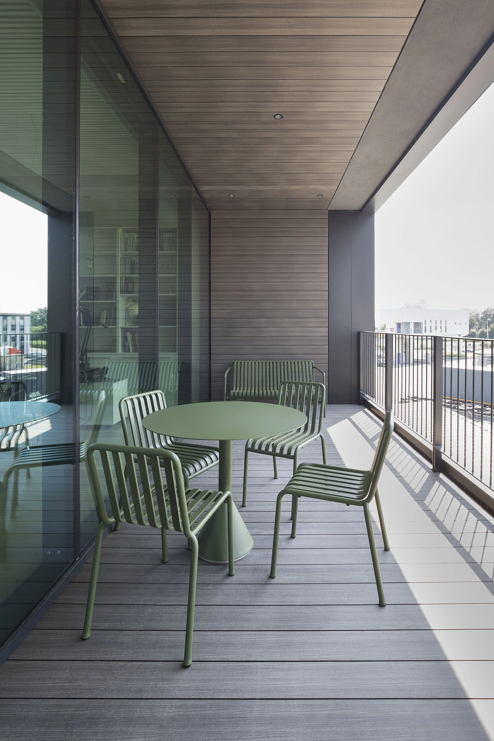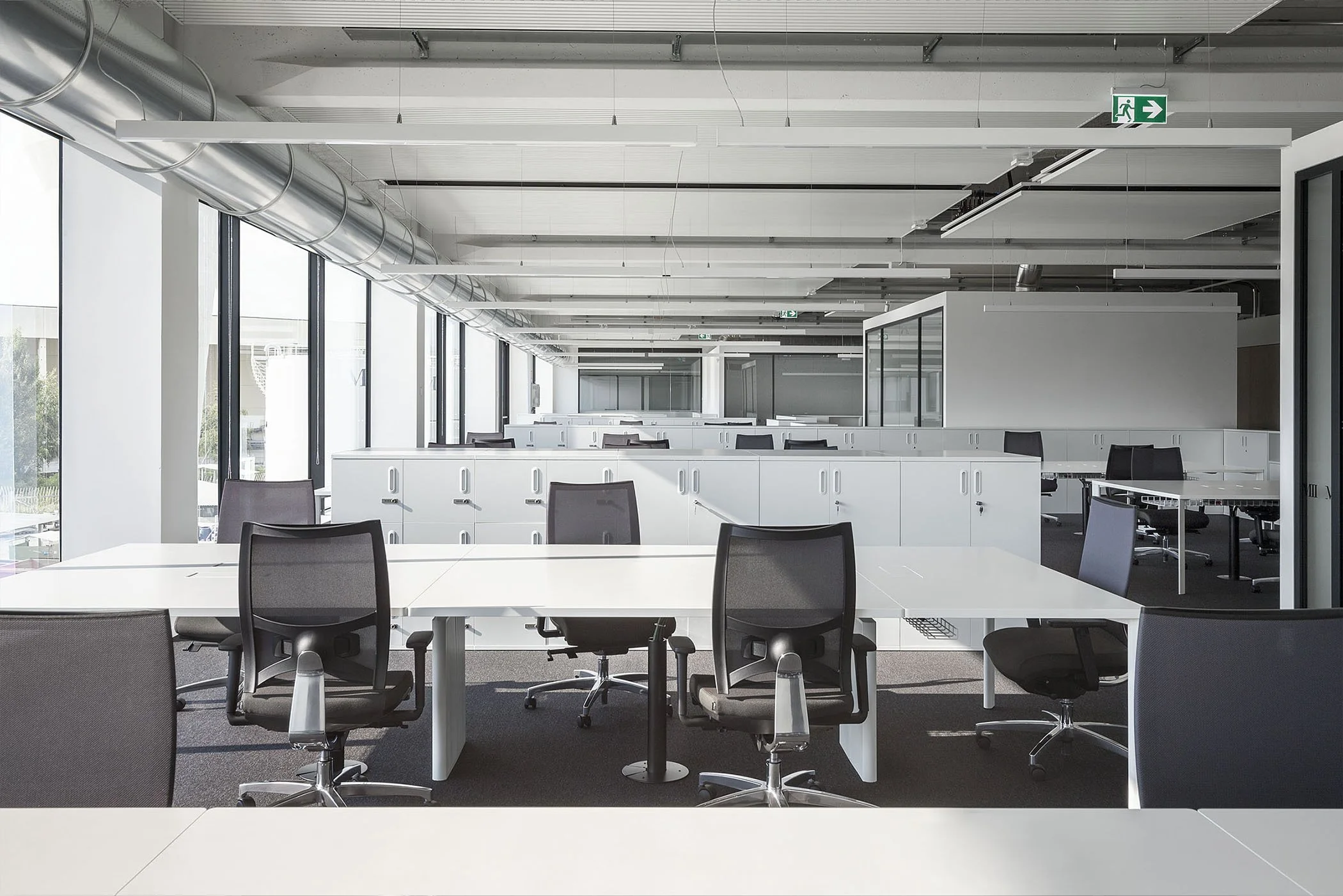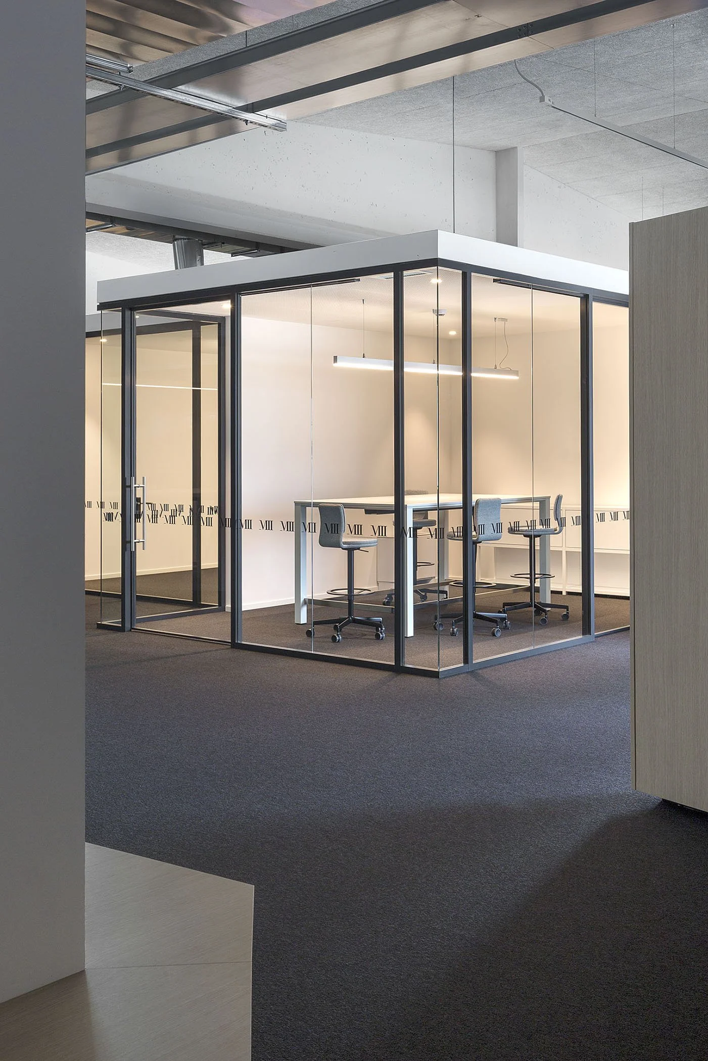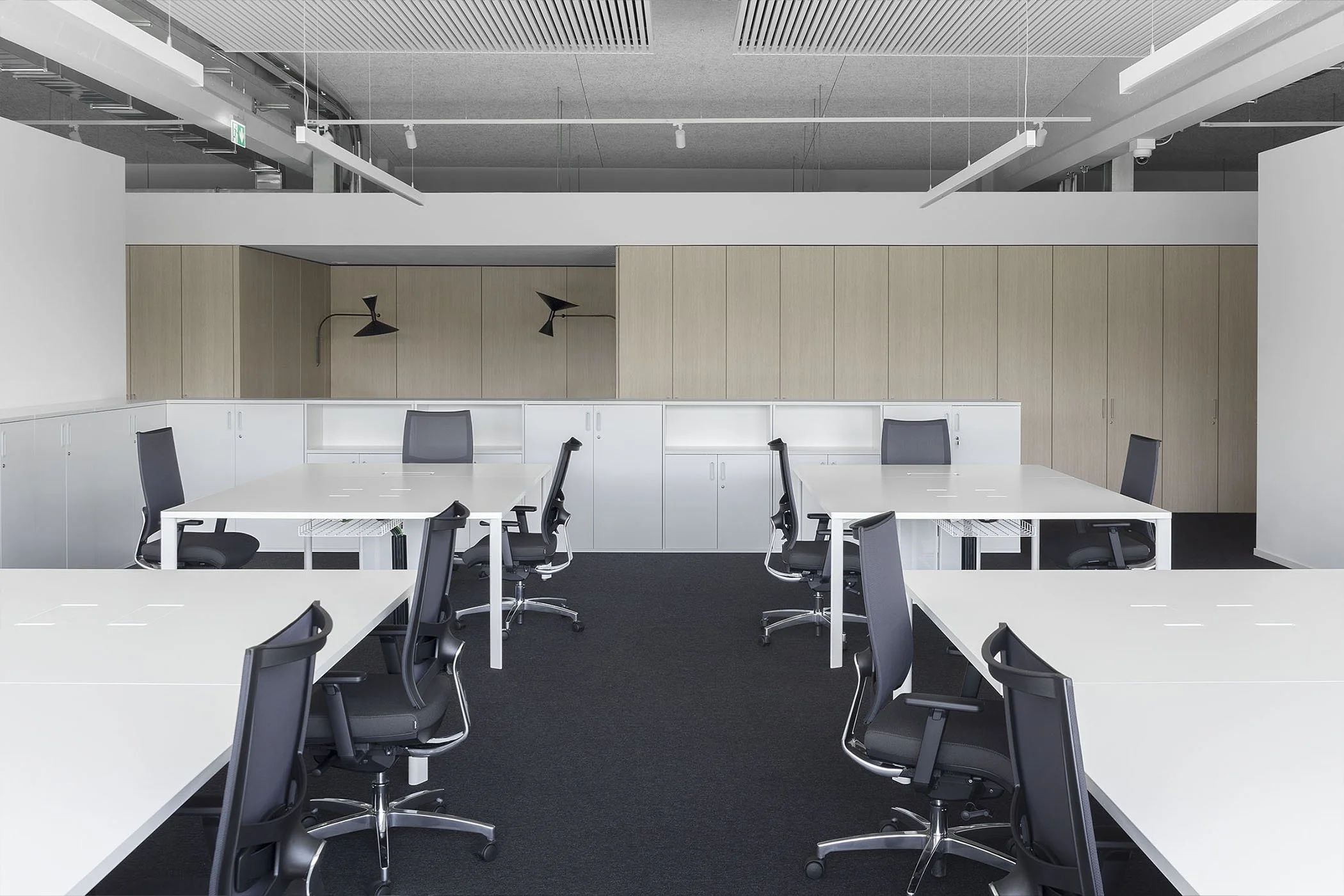 The project involved the transformation of a portion of the company’s industrial headquarters, aimed at integrating new executive offices and creating a representative environment. A key aspect was the complete renovation of the facade along the building’s long side, together with the reorganization of circulation routes and the vertical circulation cores. Interior spaces were arranged to accommodate 60 workstations, 9 meeting rooms, a main meeting room with 16 seats, 5 executive offices, as well as break areas, kitchen, facilities, and storage. Particular attention was devoted to building systems, incorporating state-of-the-art, high-efficiency solutions. Finishes, furnishings, acoustic and lighting systems were selected from leading industry brands. A complex intervention, executed through coordinated teamwork.