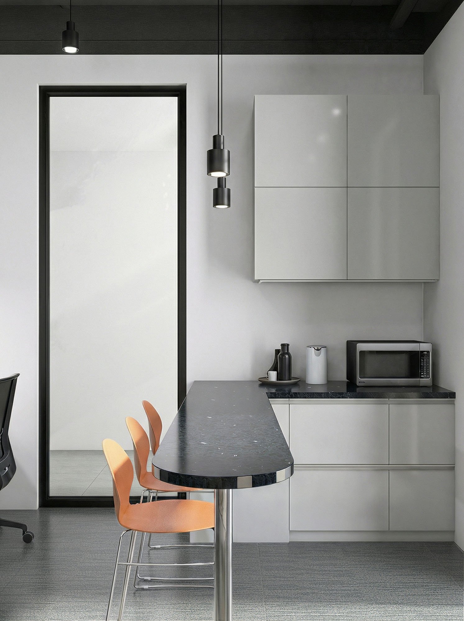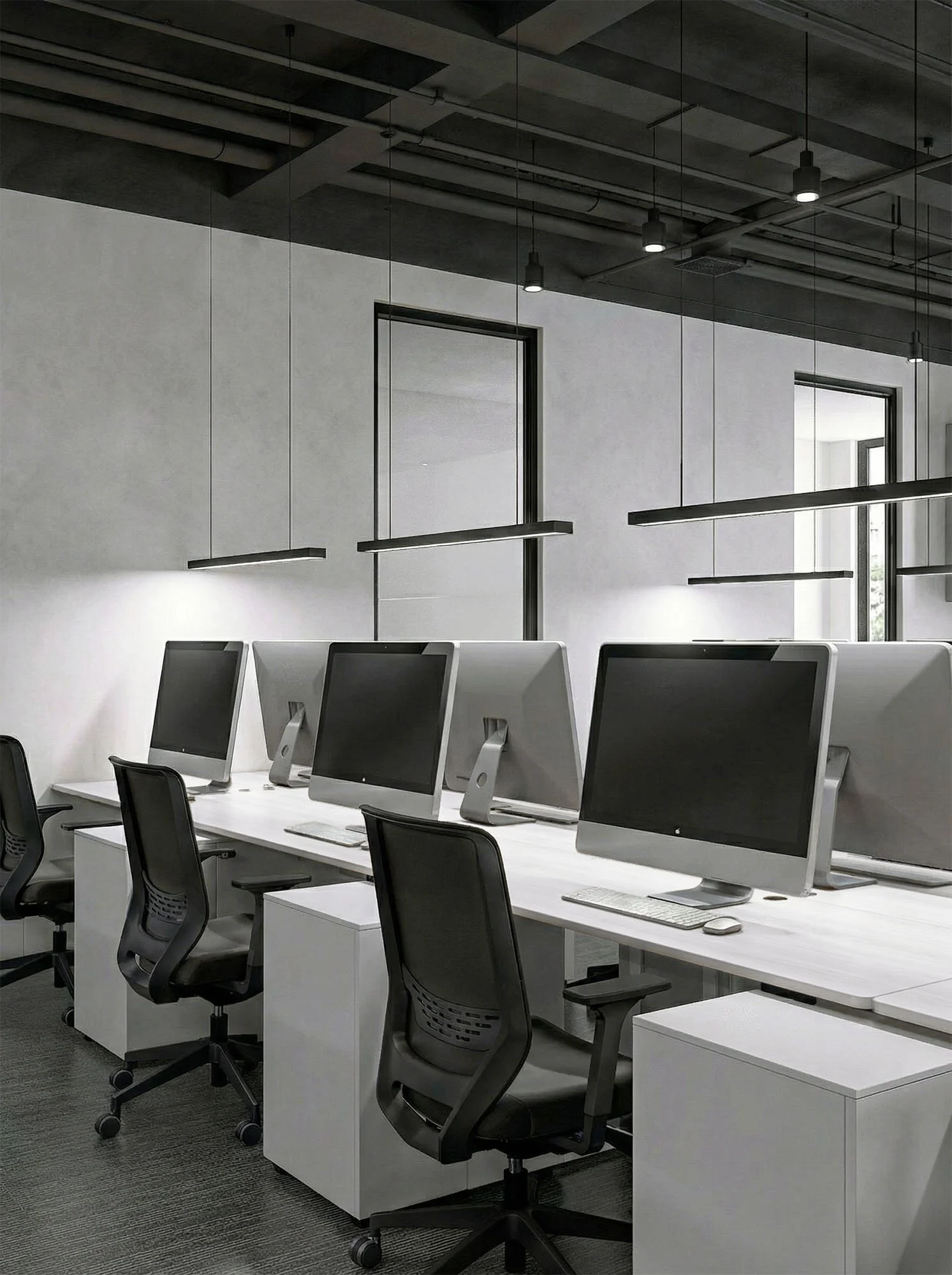 Within the production building dedicated to solar-powered lighting systems, a strategically important and active section was reconfigured to host the company’s new offices. The intervention was aimed at combining operational efficiency with a strong sense of identity, maintaining an open-plan area with a defined number of workstations, two private offices for the accountant and CEO, a spacious and luminous meeting room, and a dedicated break area.