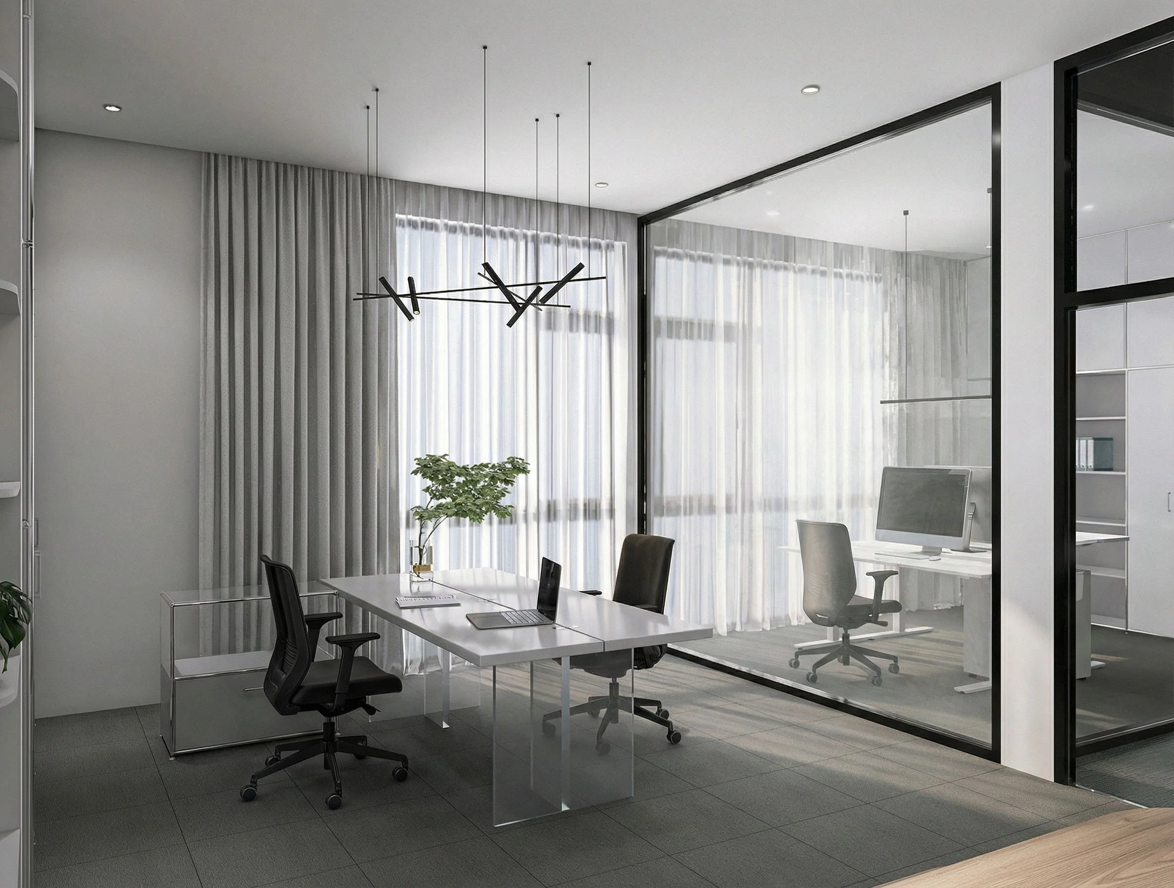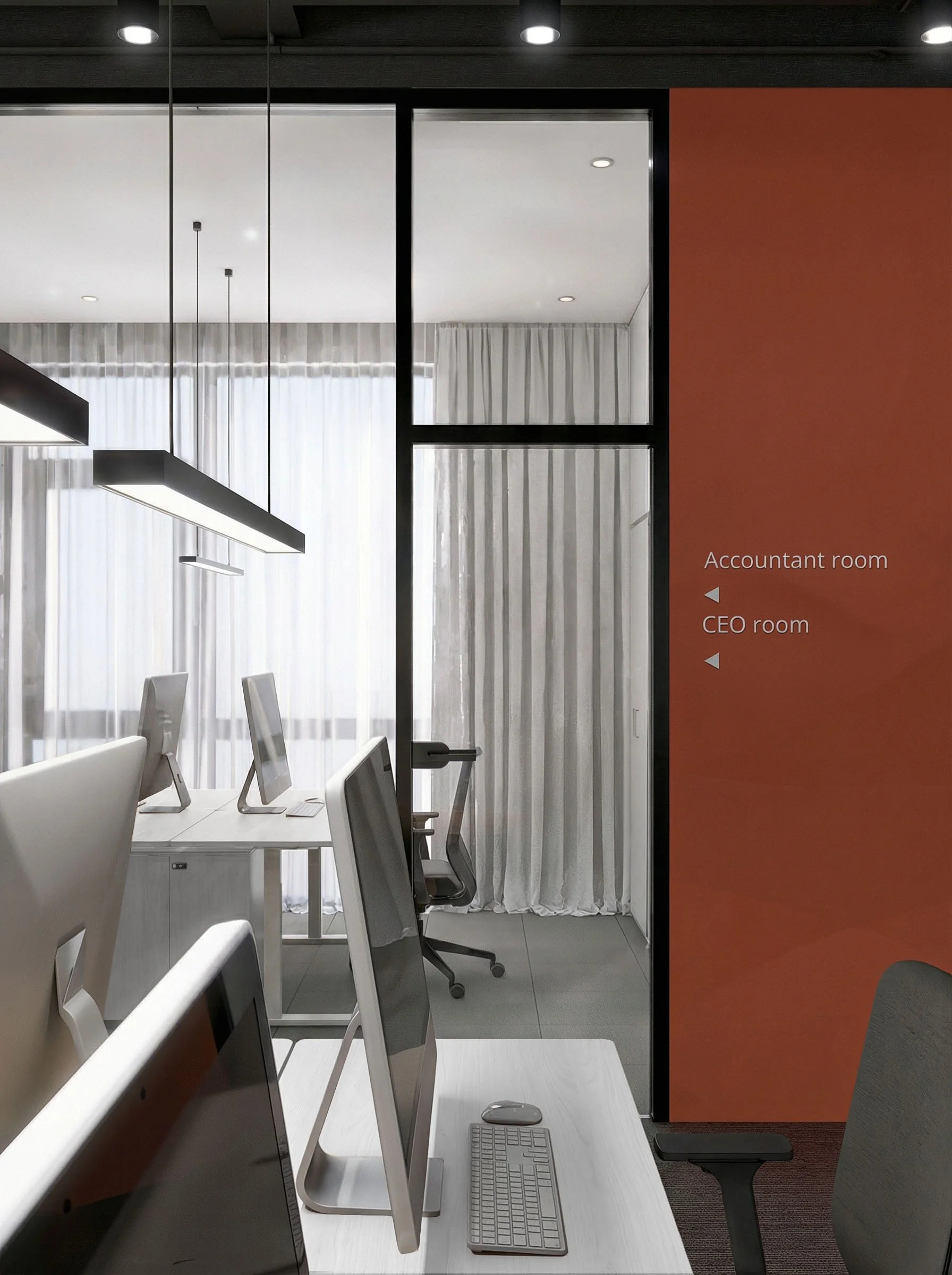 A distinctive element is the tea corner in the CEO’s office, reflecting the company’s cultural context. The overall goal was to create a statement space capable of conveying professionalism, solidity, and value.